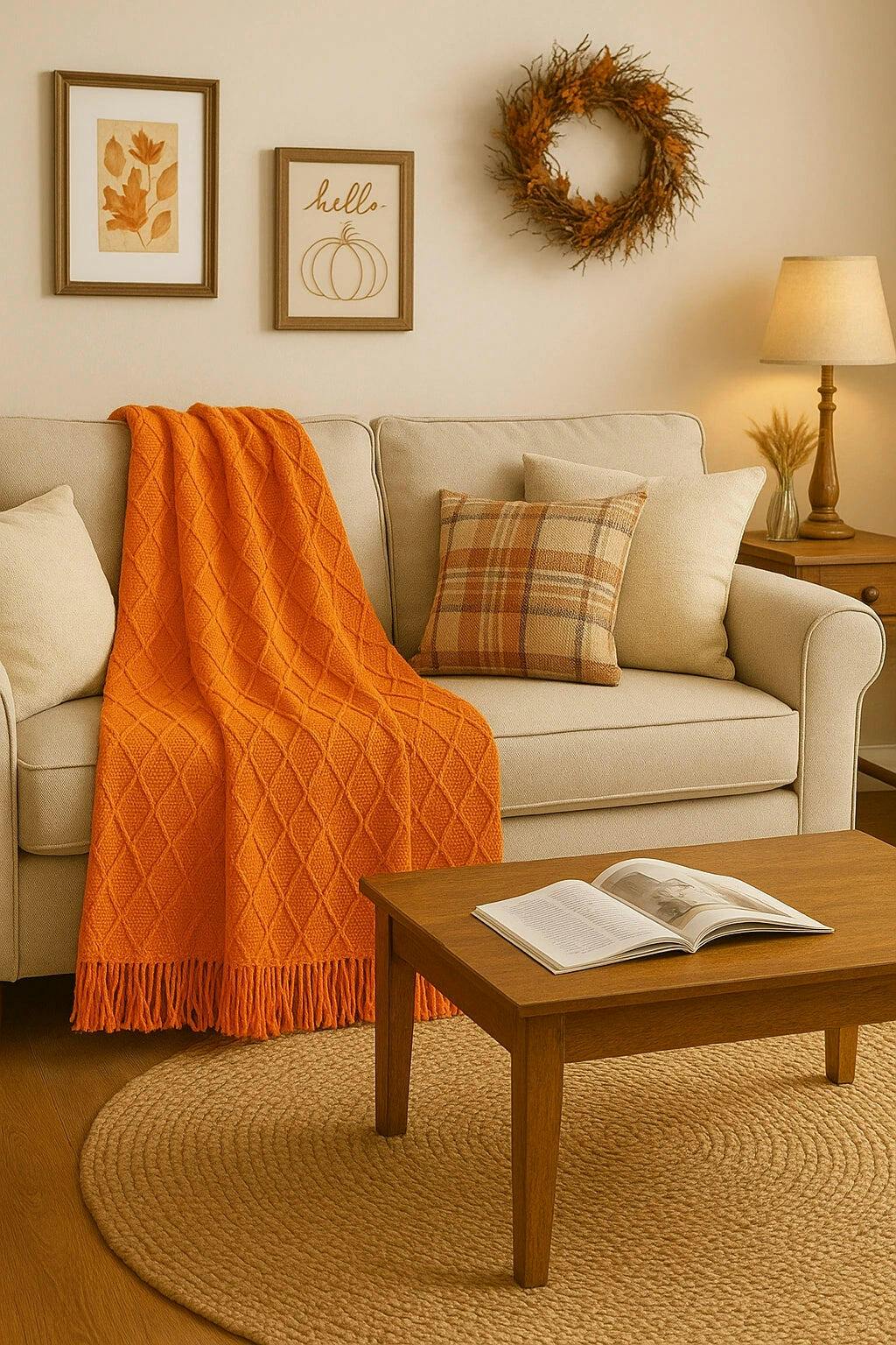 This orange rust blanket is autumn in a nutshell! Warm color, soft texture, I’m obsessed! I was looking for an additional accent for my sofa that is perfect for the fall theme. I'm glad I found this.