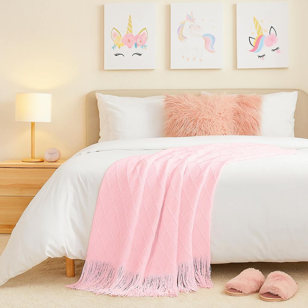 Absolutely love this blanket! Soft, feminine, and looks beautiful draped over my couch. Keeps me warm without feeling heavy. 💕