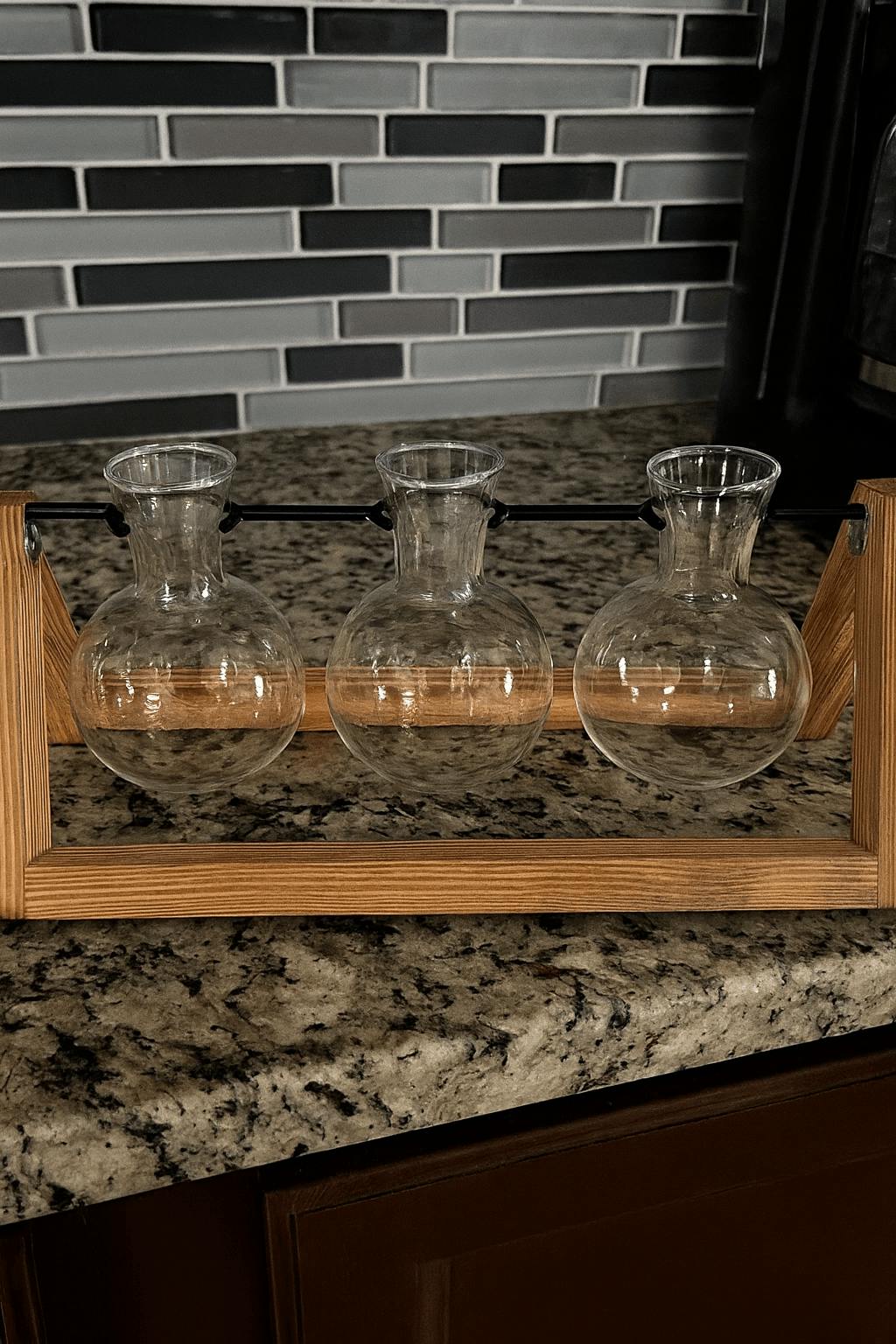 - Included: 3/5 Glass Vases, Metal Rod, Wooden Brackets, Screws, Butterfly Nuts, Rubber Rings, Anti-Slip Sleeves, Cleaning Brush